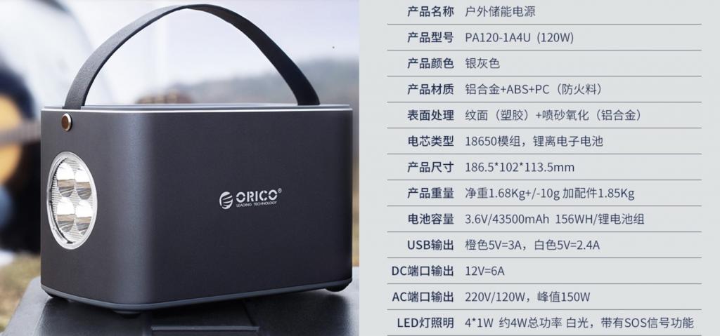 这款 ORICO PA120-1A4U 户外电源个头很小,下面看一下产品信息,作一个全面了解: