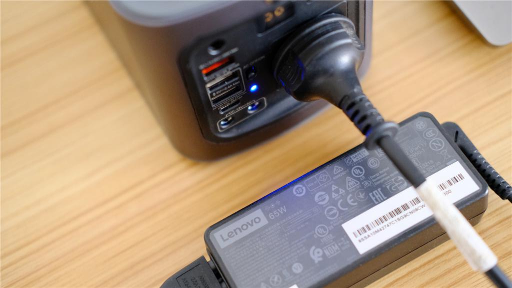 最常见的使用场景应该是在外使用笔记本电脑,没电可以用它应急,为我的 65W 笔记本电脑供电。